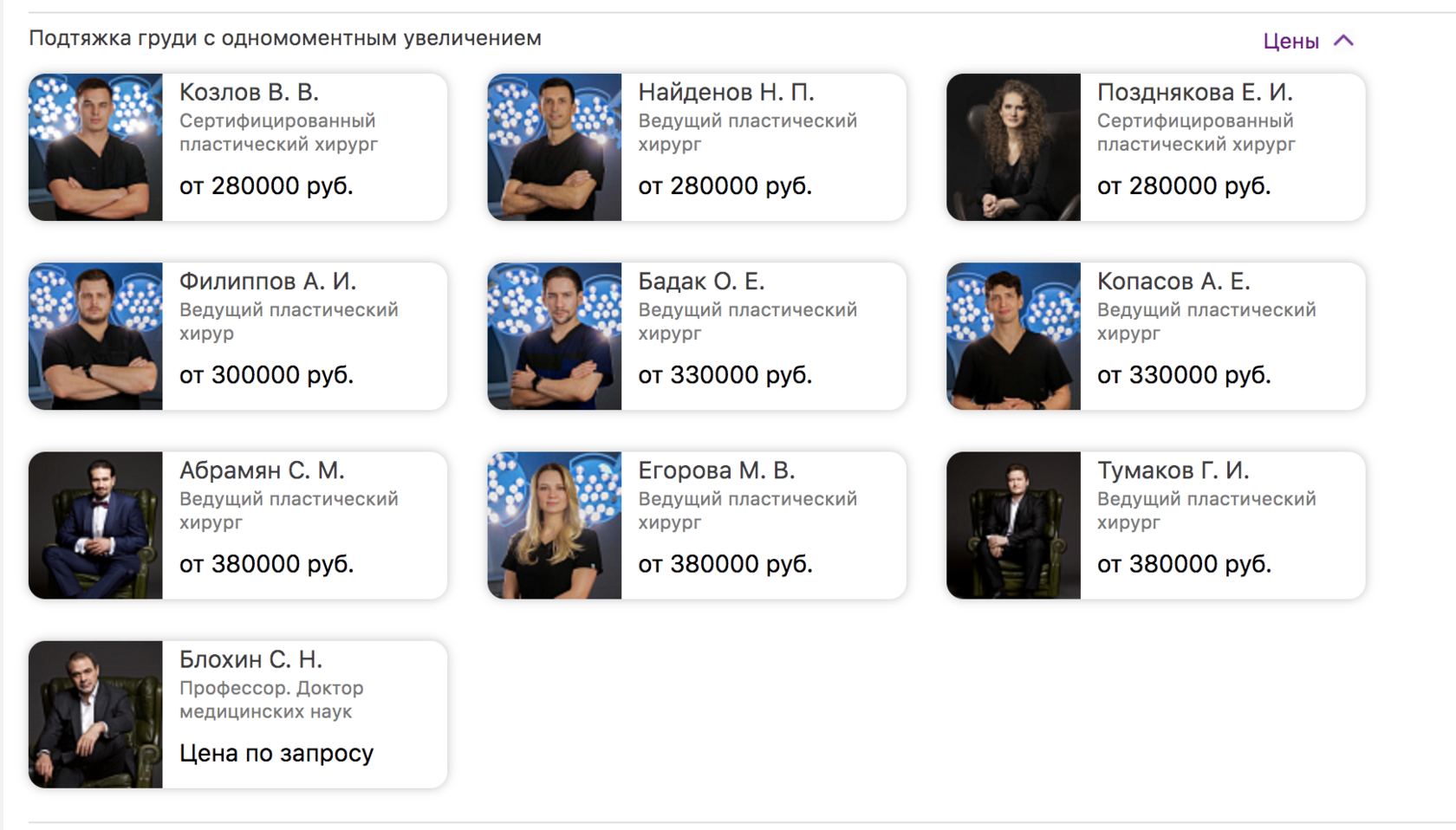 Что важно: Опыт хирурга, доверие, отзывы и примеры работ. Больше описание процесса и клиники.