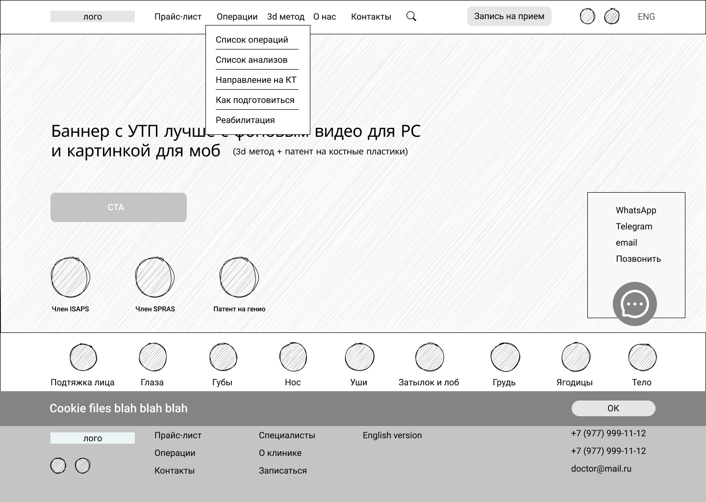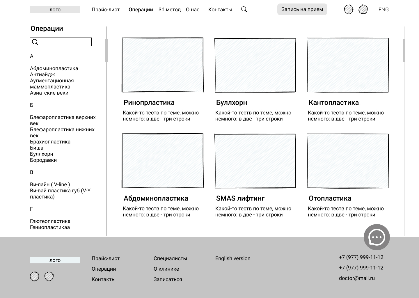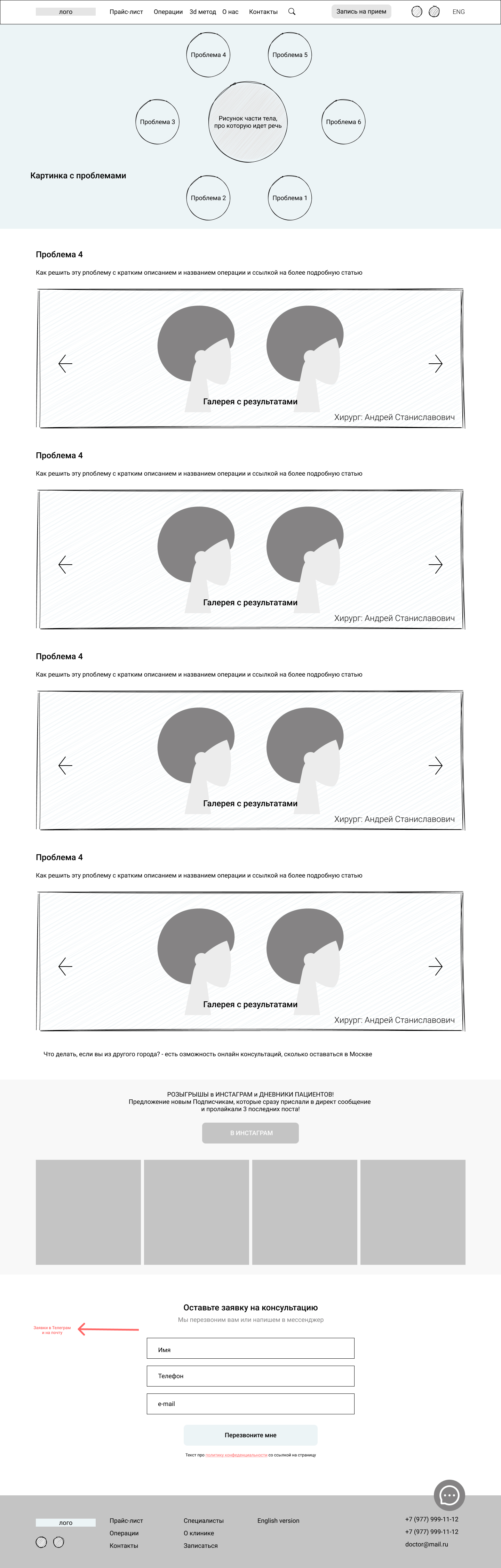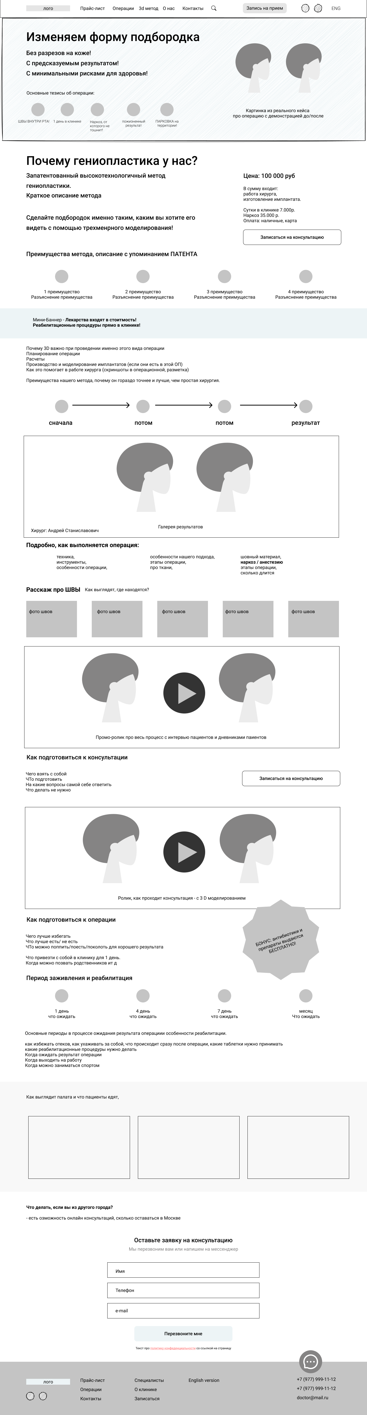 По структуре как Landing page, чтобы можно было на нее приводить трафик из директа. Страница должна закрывать все вопросы об операции, включая цену, анализы, запись видео с доктором и из операционной, разъяснения и так далее.