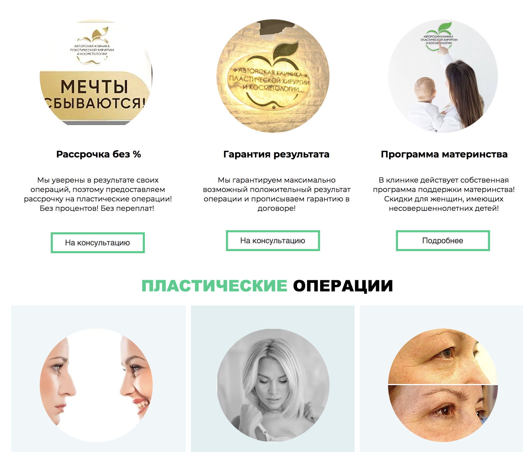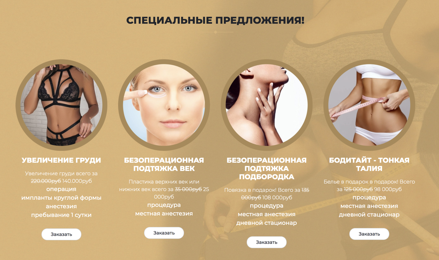 Это важная часть ЦА — люди, которые далеки от пластики, но при этом имеют проблемы. Им не хочется разбираться, но они готовы купить лучшее по хорошей цене, им не хочется искать, им нужно готовое решение, а так же небольшой экскурс в тему, чтобы знать, с чего начать.