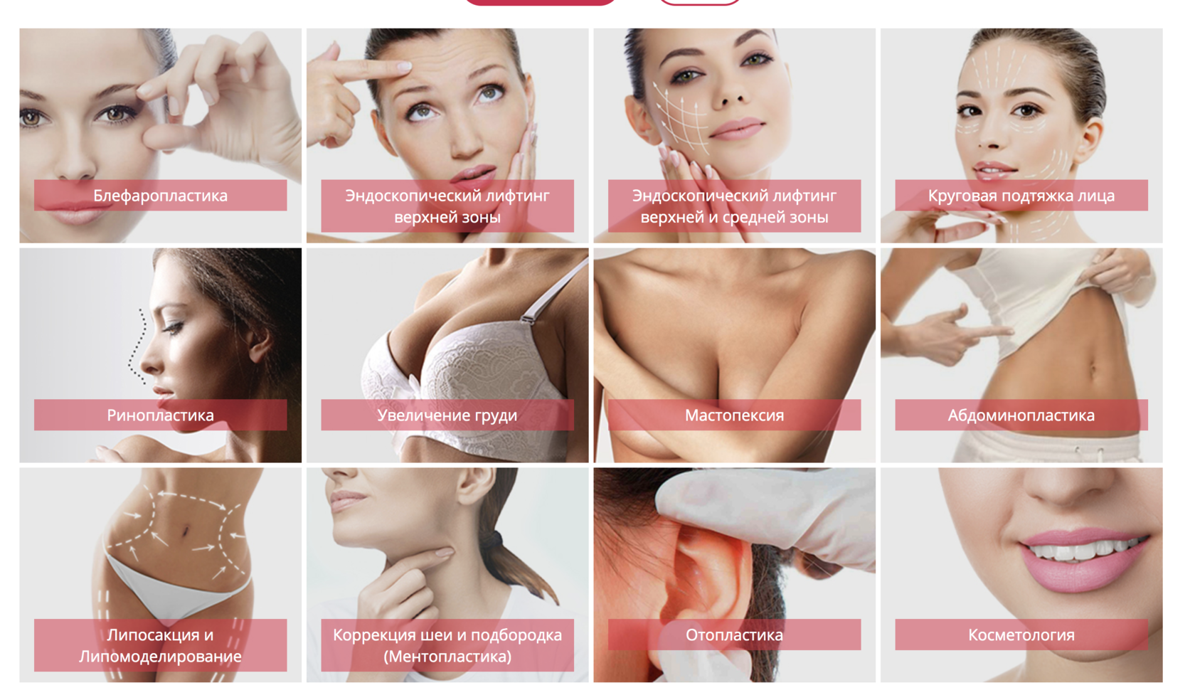 Так же клиника обладает патентом на авторский метод гениопластики (операция на подбородке). На это следует делать упор, так как это конкурентное преимущество.
