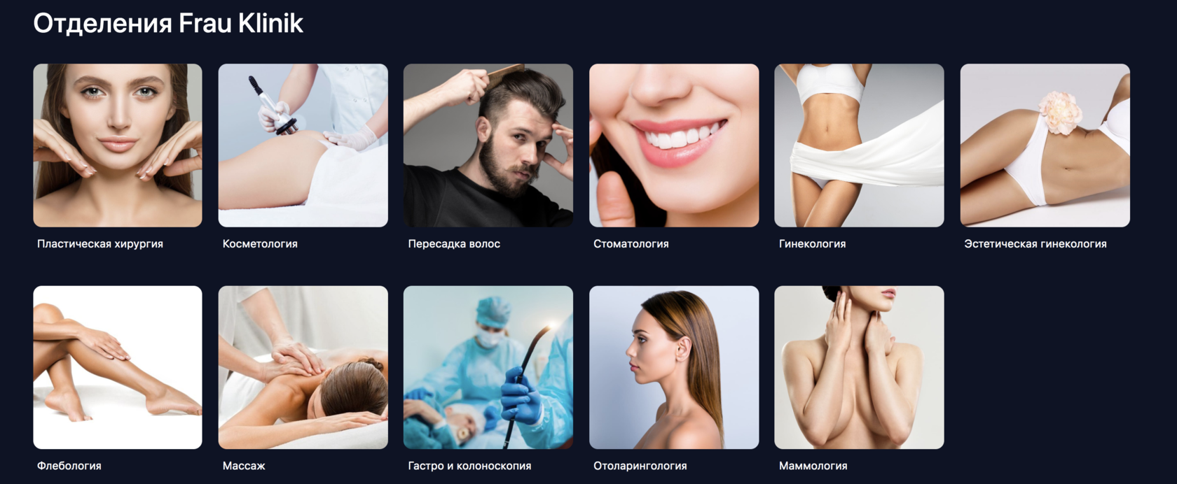 Примеры визуала сайтов клиник из ТОП 10 запроса в поисковиках. — Cтоковые фотографии, — Cтандартная сетка, — Выключка по центру, междустрочное расстояние и компоновка текста делают его неудобным для чтения. — Полупрозрачные плашки делают визуал «мусорным»